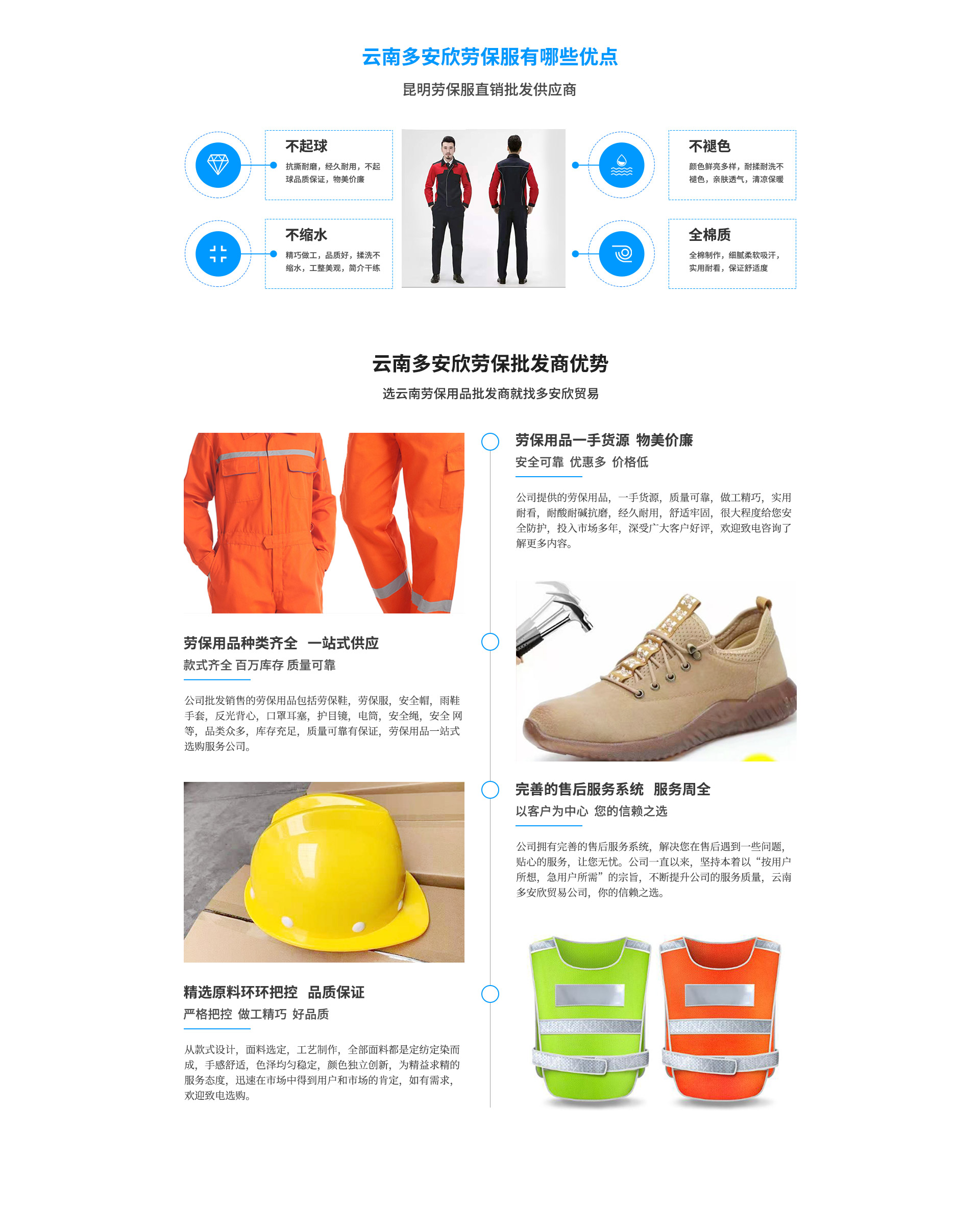 云南多安欣貿(mào)易有限公司位于云南省昆明市官渡區(qū)昌宏路東聚五金建材市場(chǎng)東區(qū)10-10。云南多安欣貿(mào)易有限公司是一家集生產(chǎn)。銷售、批發(fā)為一體的大型勞保用品單位。公司成立18年有余,在這18年里我們憑借我們行業(yè)知識(shí),認(rèn)真的態(tài)度和售后服務(wù),在云南市場(chǎng)迅速崛起,同時(shí)代理銷售國(guó)內(nèi)外各優(yōu)良廠商(普通、特種)勞動(dòng)防護(hù)用品。安全防護(hù)用品,公司現(xiàn)有員工15人,公司一直以來,堅(jiān)持本著以“按用戶所想,急用戶所需”的宗旨,從款式設(shè)計(jì),面料選定,工藝制作,為精益求精的服務(wù)態(tài)度,迅速在市場(chǎng)中得到用戶和市場(chǎng)的肯定,公司經(jīng)營(yíng)品種達(dá)到一萬余種,包含了勞保用品的各個(gè)系列,如定制工裝、頭部防護(hù),呼吸防護(hù),勞保鞋,電力物資雨衣類眼臉部位防護(hù),3m系列,墜落安全防護(hù),交通安全設(shè)施電筒類多功能防護(hù)服、防塵防毒。耐酸堿。耐油,耐高溫,防寒,阻燃,隔熱,氣體監(jiān)測(cè),絕緣防靜電,防砸高空墜落,救護(hù),逃生,等特種勞保用品,如(彩條布,吊帶軟梯噸袋安全帽,...